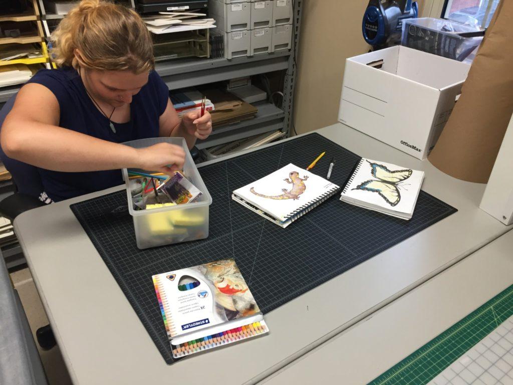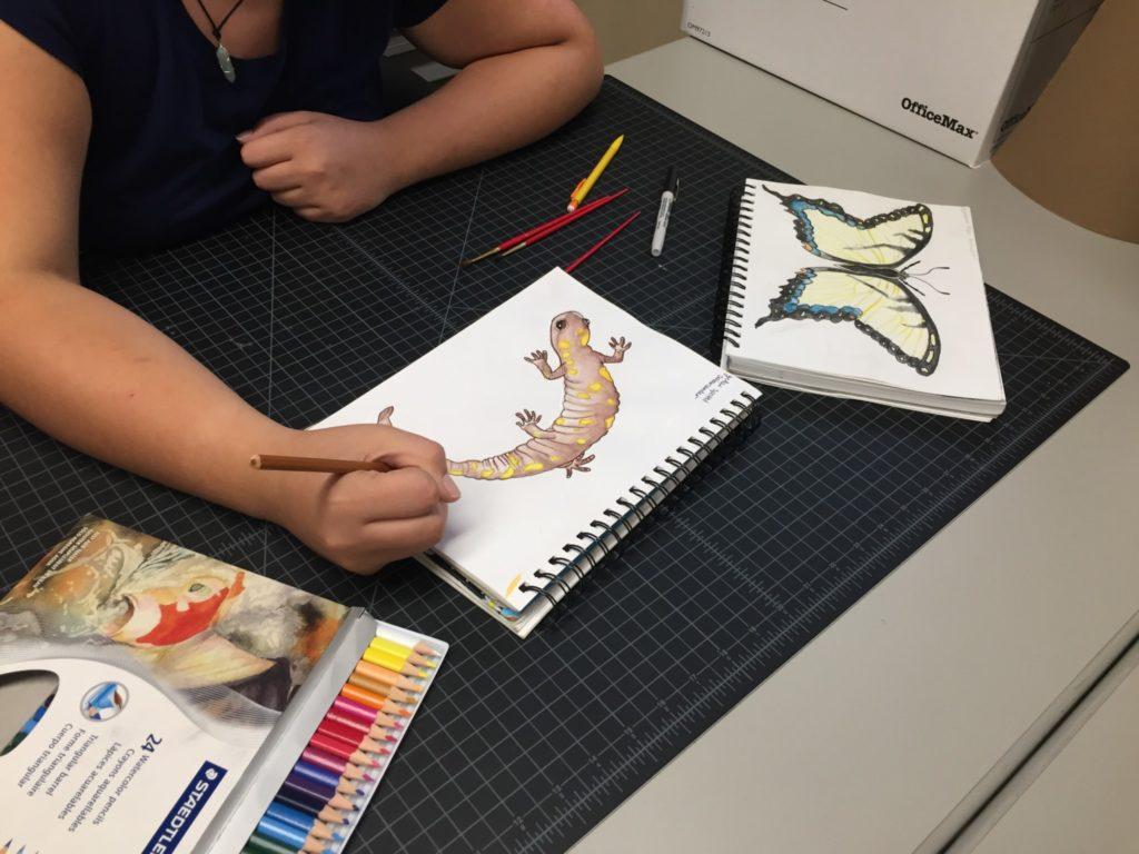 This project was difficult but rewarding. I learned a multitude of things I would’ve never even been curious about. For example, salamanders release toxins through their skin, eating Lillies will make you vomit until you pass out, and watercolor colored pencils are the best thing since sliced bread. My coworkers and other visitors reacted to my work with enthusiasm and encouragement, though I felt uneasy about it being on display at first.  Now that the display has been up for awhile and multiple people have made positive comments about my work, I am far more proud and content with people seeing it on a daily basis.